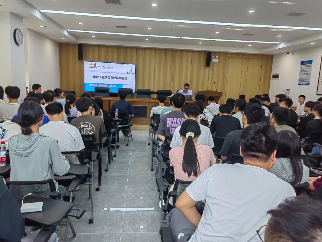 生产实习第二站来到安徽金泉合肥招标代理中心,由公司造价事业部负责孙磊、土建部部长殷飞飞准备了造价业务相关的知识讲座,以实操案例为切入点,为同学们讲解了造价实务、风控和行业形势等干货满满的行业知识。