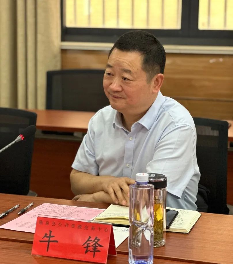 牛锋主任围绕临泉县交易中心的基本情况,“临事无忧、清泉交易”的服务保障机制,对协会的建议三个方面进行发言,并表示要不断加强公共资源交易平台建设,完善服务机制,推动公共资源交易高质量发展。