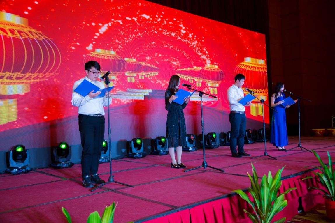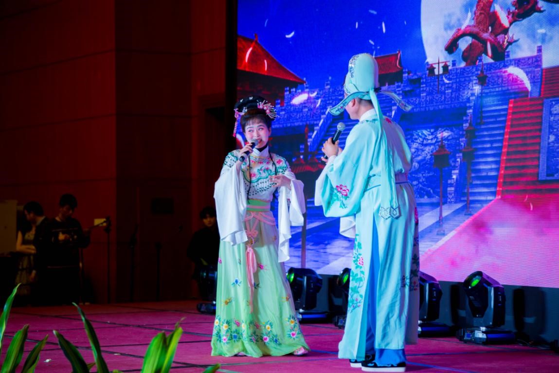 颁奖后,进行了文艺表演。年会节目形式多样,精彩纷呈。合肥部表演的诗朗诵《金泉赞歌》、茶艺表演《莲语禅心》、情景剧《天鹅湖畔》,利辛部表演的二胡独奏《铁血丹心》,六安部表演的独唱《感谢》,临泉部表演的舞蹈《青春style》、大合唱《团结就是力量》等节目引发阵阵掌声,把年会气氛推向高潮。