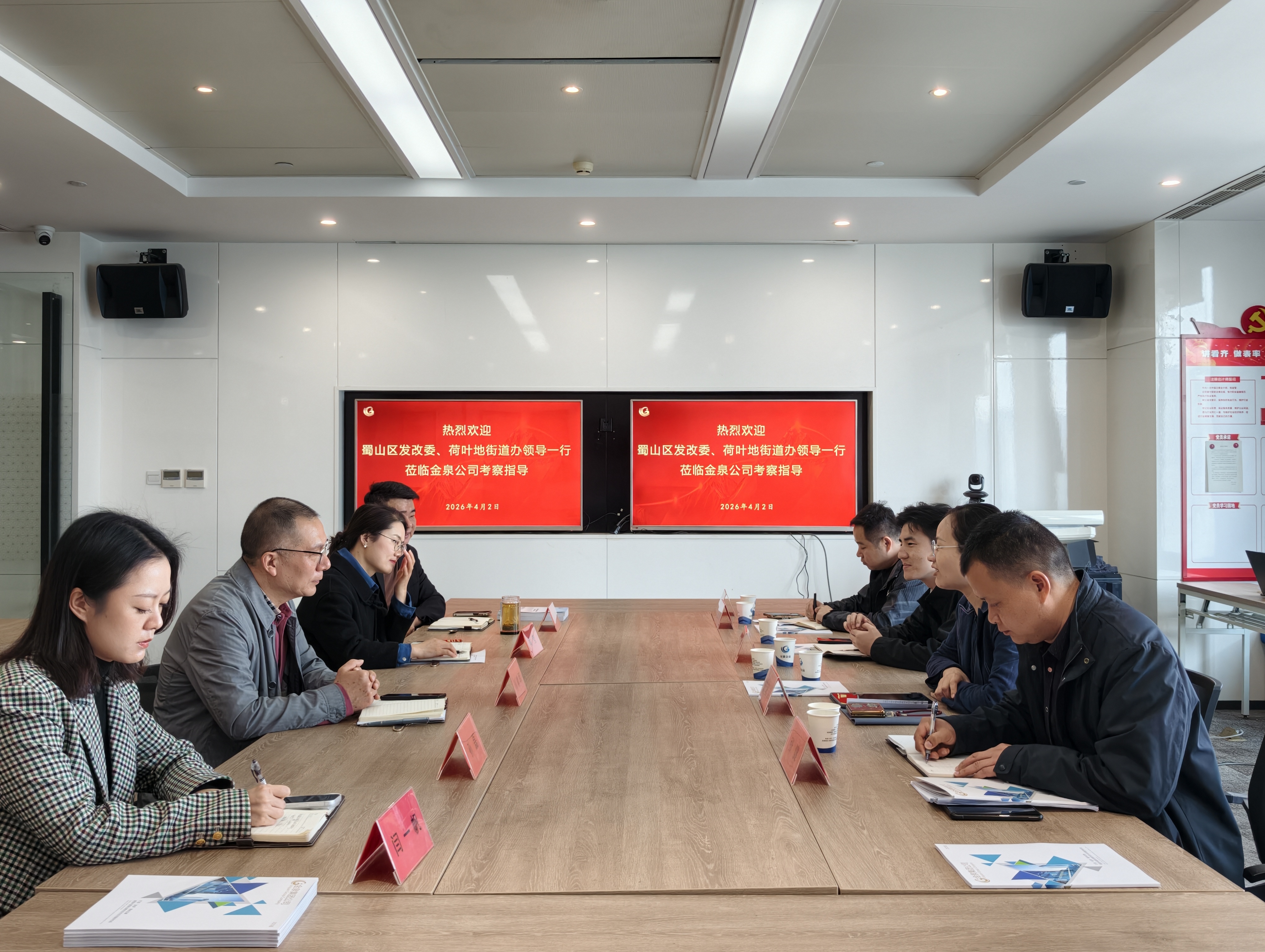 4月2日,蜀山区发改委副主任苏晓康、荷叶地街道办事处主任王秋荣率队到米兰官方版网站登录入口-米兰online(中国) 走访调研,米兰官方版网站登录入口-米兰online(中国) 常务副总经理孙建军、咨询研究院相关负责人接待调研组一行。