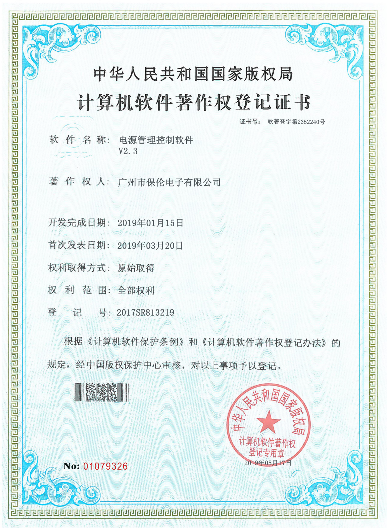 提供带有“电源管理控制软件”字样的软件著作权(加盖原厂公章),为保证证书的真实有效性,国家版权局可查,软著权需显示为公司名称,个人所有无效。