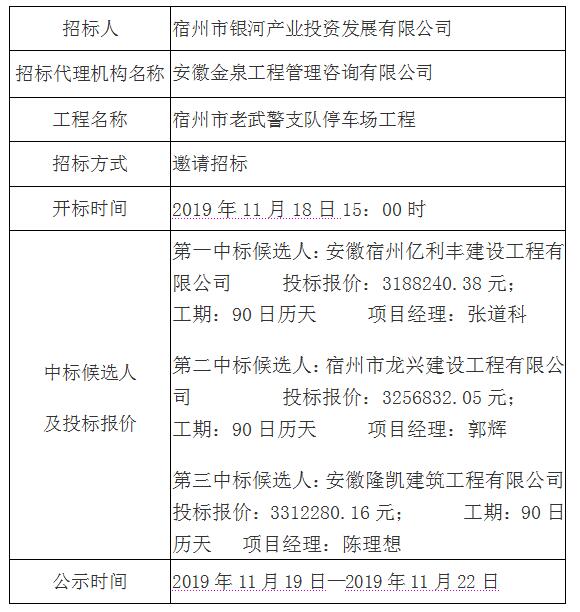 宿州市老武警支队停车场工程中标候选人公示