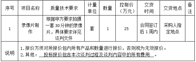 米兰官方版网站登录入口-米兰online(中国) 受某部的委托,现对某部录像片制作项目进行竞争性谈判,欢迎具备条件的国内供应商参加谈判报价。