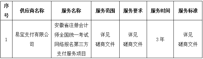 安徽省注册会计师全国统一考试网络报名第三方支付服务项目成交公告