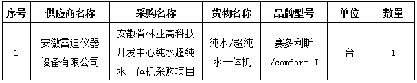 安徽省林业高科技开发中心纯水超纯水一体机采购项目成交公告