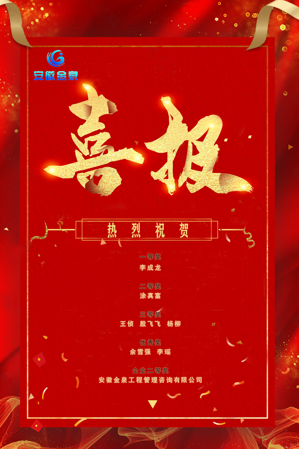 竞赛是对造价人员专业水平的检验和提升,希望我们再接再厉。公司也将继续为锻炼一批综合能力强、专业水平高的人才队伍而努力,共同为打造金泉品牌而不懈奋斗。