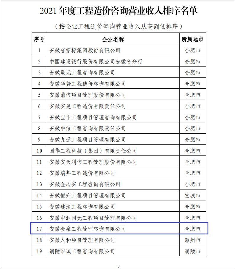6月,安徽省建设工程造价管理协会公布2021年度安徽省工程造价咨询营业收入排序前150名企业名单,米兰官方版网站登录入口-米兰online(中国)