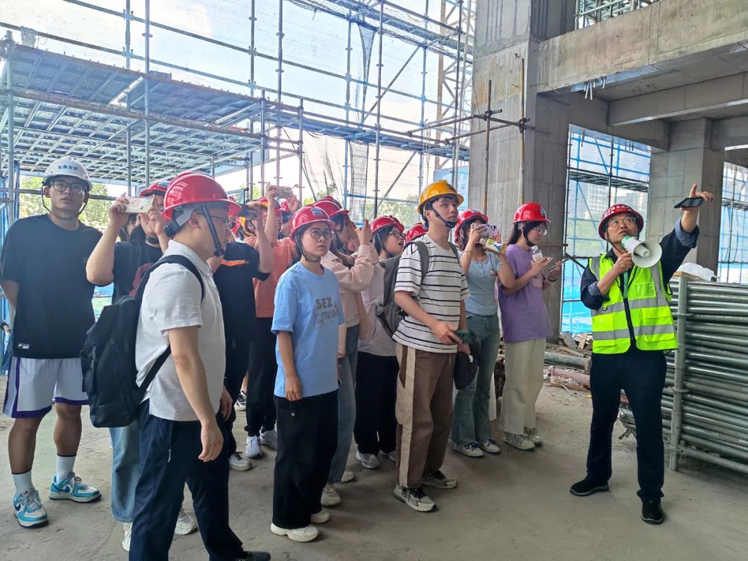 为帮助同学们将书本知识转换为实践能力,做到活学活用,生产实习第一站安排在公司全过程咨询项目上市公司安徽壹石通材料科技股份有限公司技术研发中心建设施工现场,项目总监闫俊带领大家实地观摩了项目建设现场、技术工艺、施工设备等,让同学们提前从现实层面认知未来将会从事的工作。