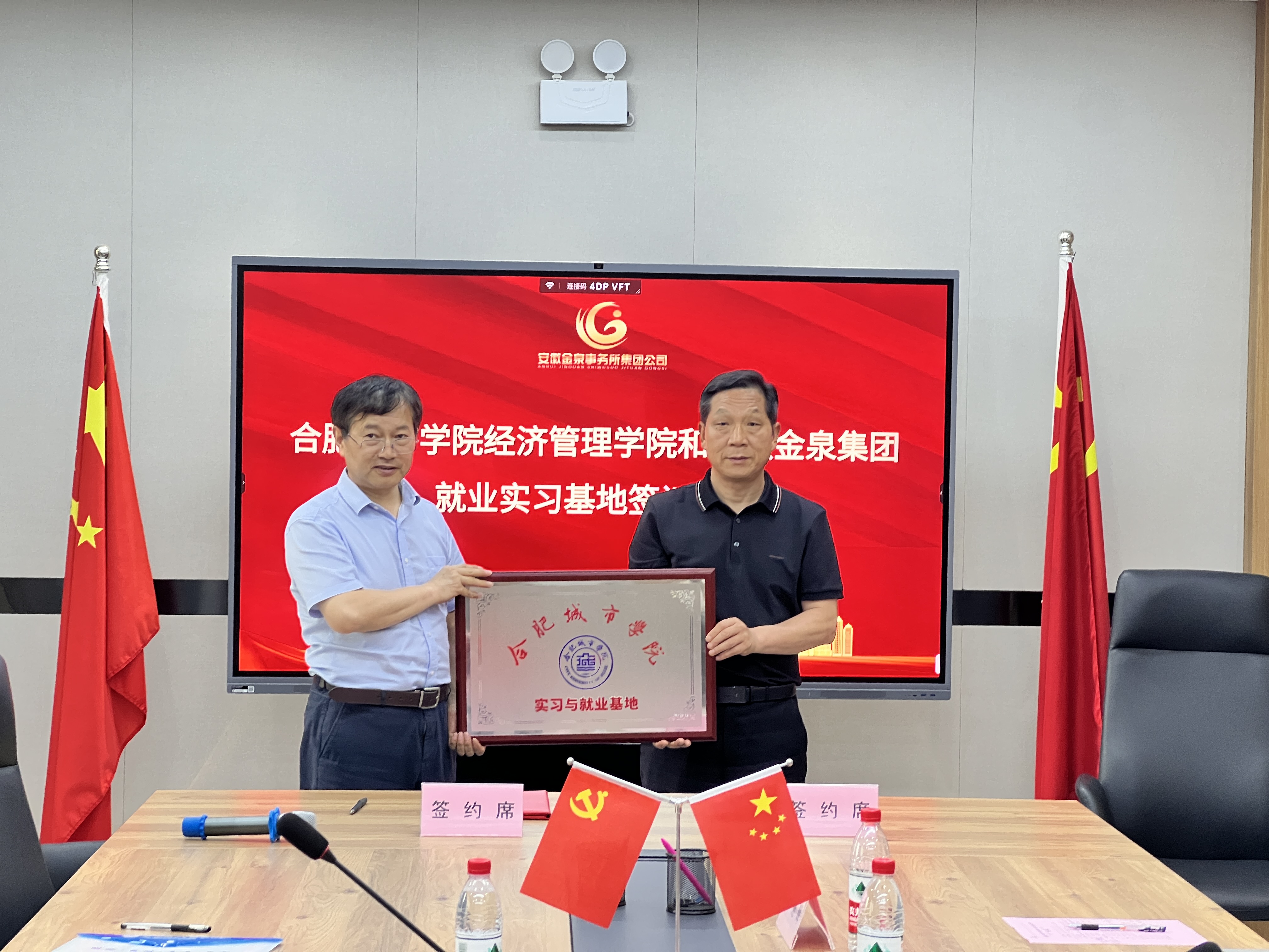 随后,双方举行了签约和授牌仪式,正式签订了共建合肥城市学院大学生就业实习基地协议书,举行了大学生实习与就业基地授牌仪式。