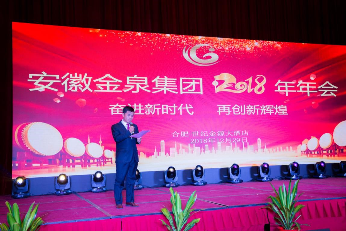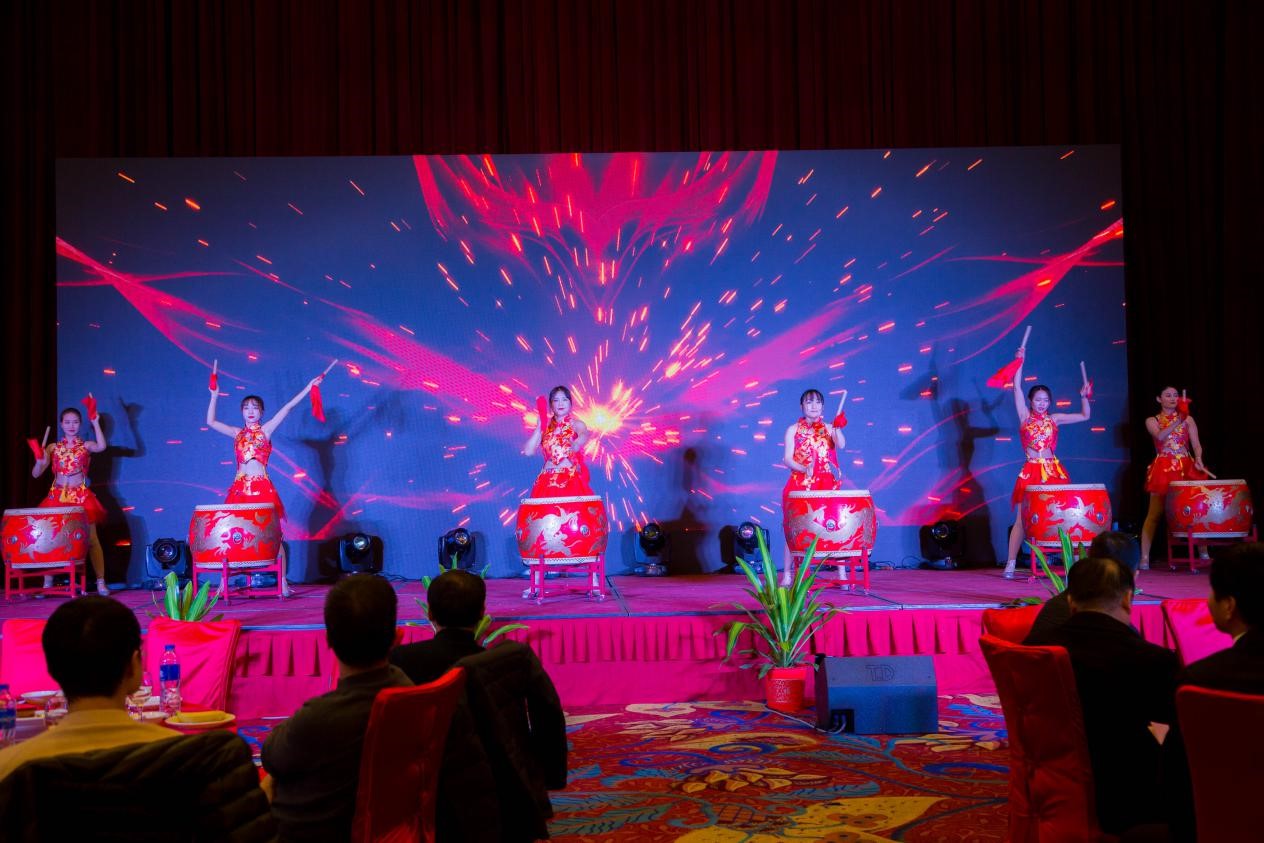 18时30分,年会在开场鼓舞《雕龙战鼓》欢快的音乐声中开启。董事长庄恒书致辞,他指出,我们以无比喜悦的心情,在这里欢聚一堂举办年会,是为带有艰辛与成就的2018年而庆贺,是为充满生机与希望的2019年而祝福。2018年金泉的业务收入进一步提高,业务市场进一步扩大,办公条件焕然一新,受到社会各界的好评。大家勤奋工作给金泉留下了成功发展的足迹,大家辛勤的付出给金泉留下了许多值得赞赏的故事。