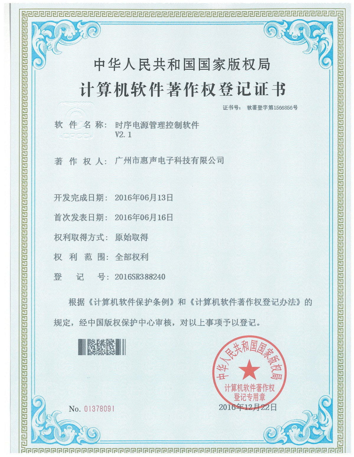 提供带有“电源管理控制软件”字样的软件著作权(加盖原厂公章),为保证证书的真实有效性,国家版权局可查,软著权需显示为公司名称,个人所有无效。