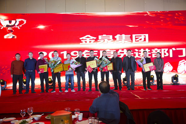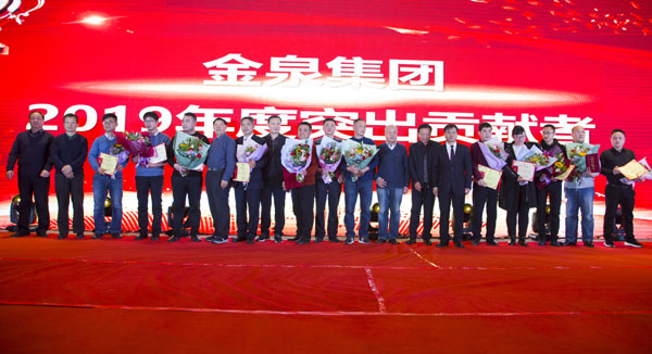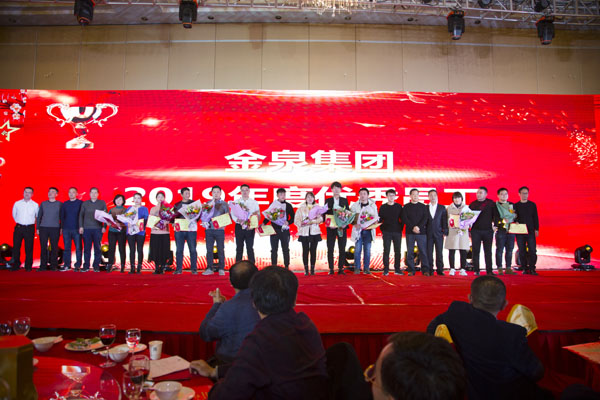 颁奖环节,2019年度优秀员工、突出贡献者、先进部门和荣获县级以上荣誉的员工及团体分别上台领奖,他们是金泉集团过去一年涌现出来的杰出代表,或业绩卓著、或专业精湛、或勤勉敬业,希望全体金泉人以他们为目标,学习先进、追赶先进、争做先进。