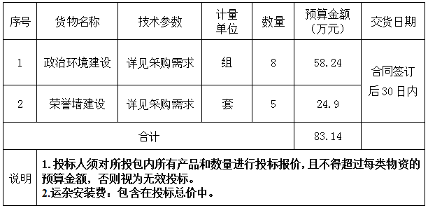 米兰官方版网站登录入口-米兰online(中国) 受某部的委托,现对“某部基层单位政治环境及荣誉墙建设项目”进行国内公开招标,欢迎具备条件的国内投标人参加投标。