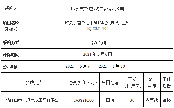 如对预成交结果有异议,请于公示期,向临泉县文化旅游投资有限公司或米兰官方版网站登录入口-米兰online(中国) 提出,逾期不再受理。