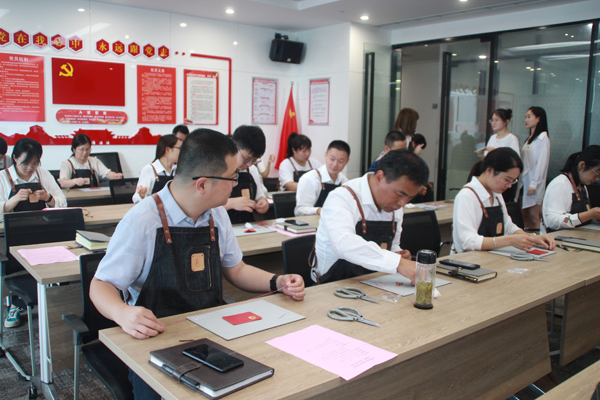 与会人员一起参与手工国旗钥匙扣和党旗卡包制作,重新学习国旗和党旗的含义,通过一针一线的缝制表达自己热爱祖国、拥护党、永远跟党走的坚定信念。