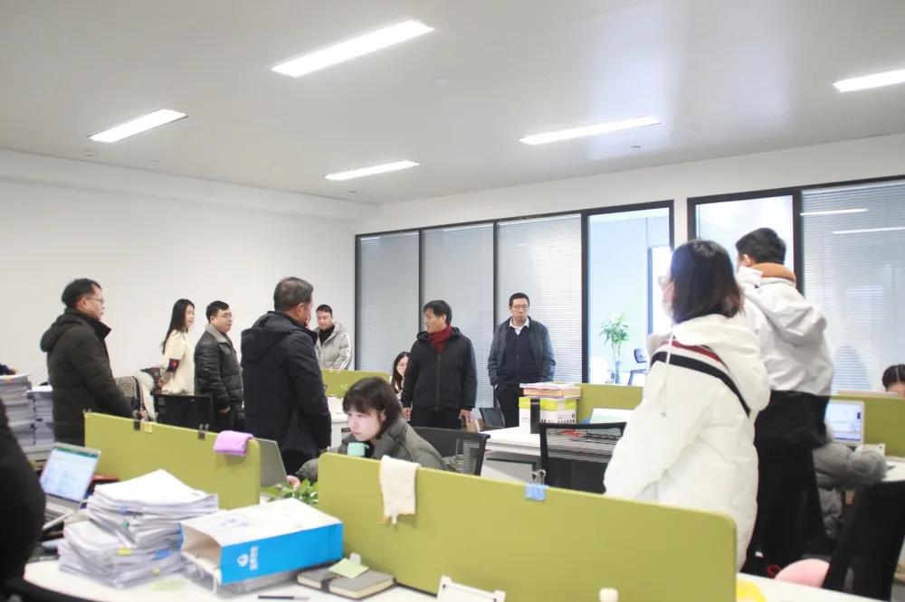董事长庄恒书率赵显泽、钱继宝、王启明、彭连喜、施杰、卓海生等部门负责人依次到合肥部各部门进行春节团拜,给大家送去节日祝福和开工礼物。