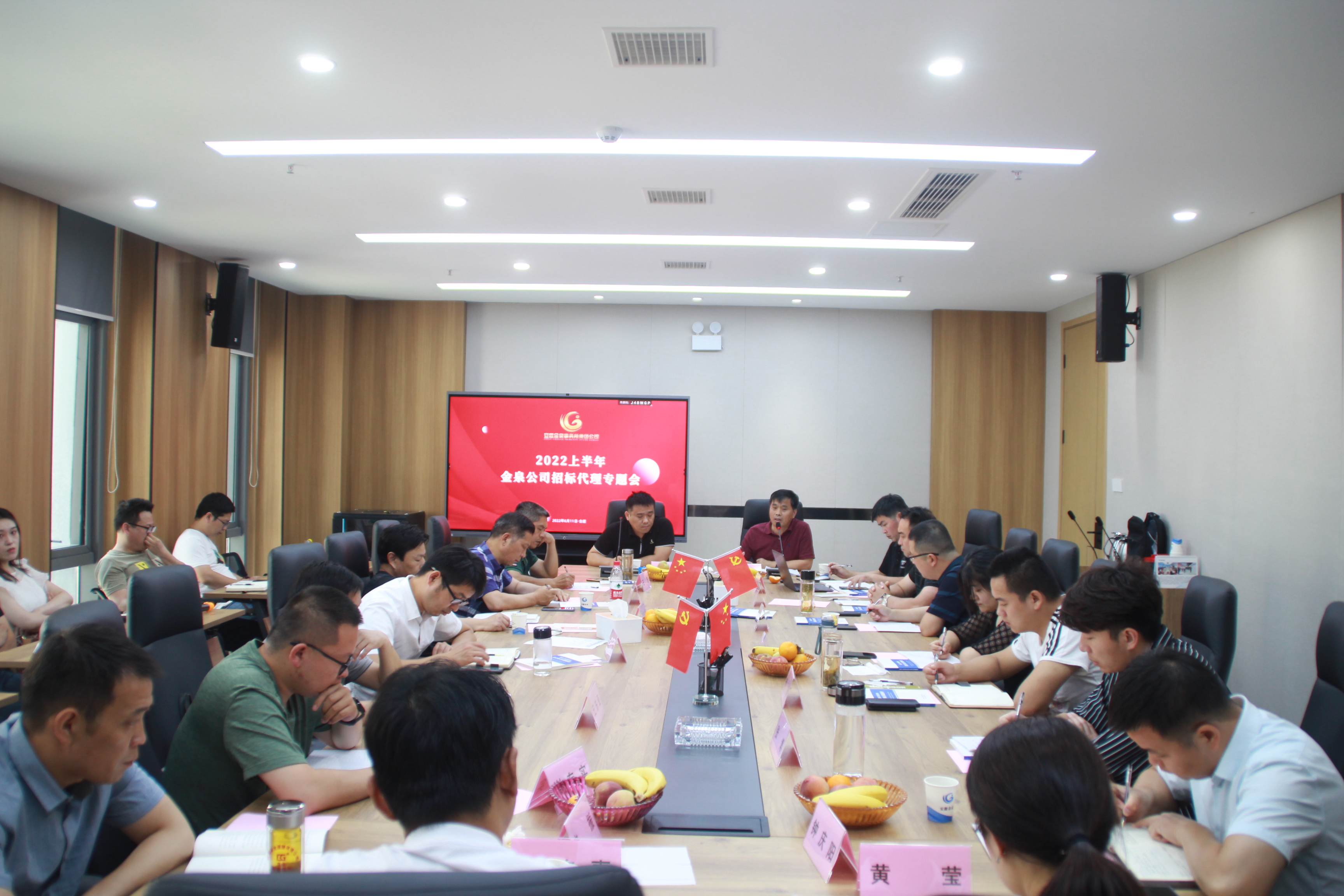 6月11日,金泉公司在公司合肥招标代理中心召开2022年上半年市场经营工作会议。公司经营层、各分部、部门负责人,市场部人员参加会议。会议总结了上半年市场经营情况,通报了营收指标完成情况,对下半年工作进行了部署安排。