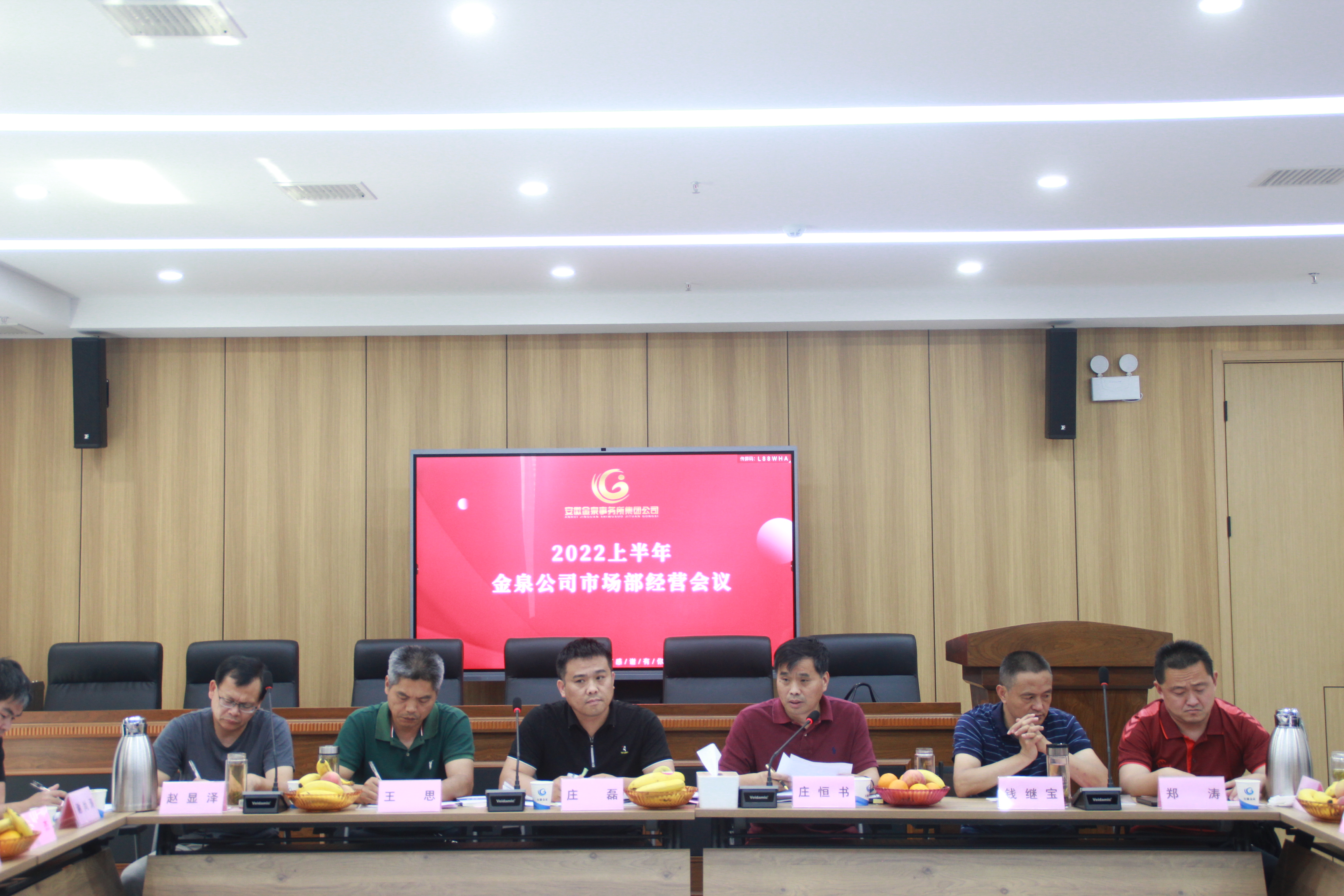 金泉公司董事长庄恒书总结了上半年公司市场经营工作,深入剖析了当前市场经济形势,他表示目前行业形势是危中有机、优势大于危机,要坚定信心,全力以赴完成年度目标任务。关于强化企业管理,他提出“六化”:一是业务管理一体化,二是市场管理区域化,三是人才培育高端化,四是绩效考核明细化,五是管理制度规范化,六是文化建设品牌化。